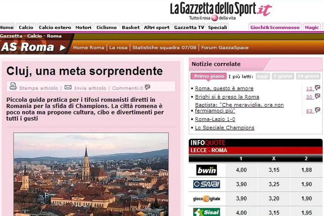 Gazzetta dello Sport: „Clujenii îi vor privi pe romani ca pe niște extratereștri”