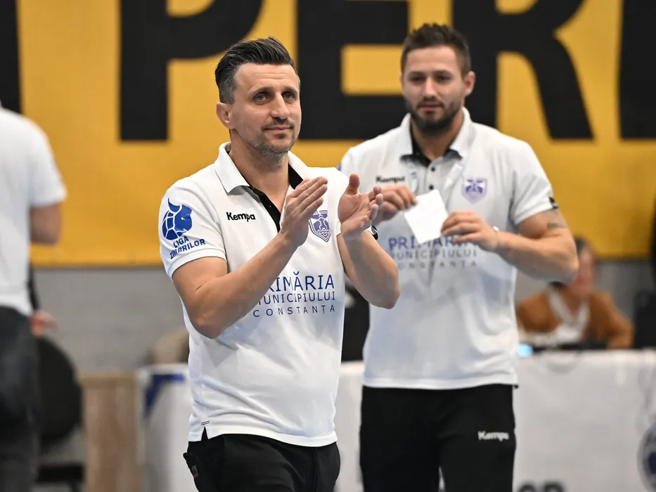 George Buricea saluta galeria constanteana dupa meciul de handbal masculin dintre CSM Bucuresti si CSM Constanta, contand pentru Liga Zimbrilor, desfasurat in Sala Apollo din Bucuresti, vineri 23 februarie 2024. © FOTO:Razvan Pasarica/SPORT PICTURES