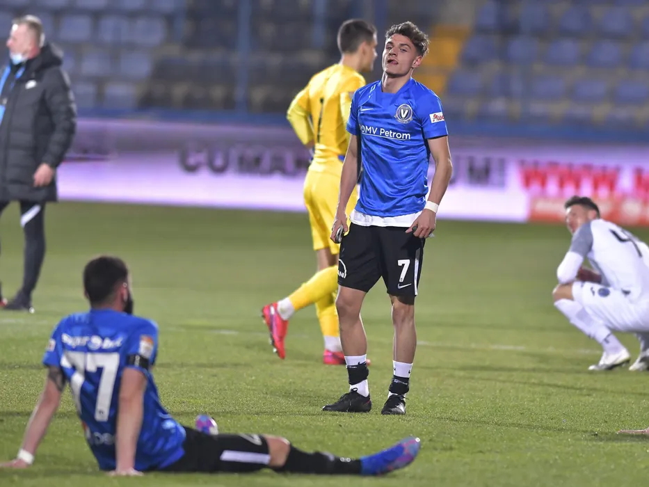 Jucatorii ambelor echipe printre care George Danut Ganea prabusiti dupa meciul de fotbal dintre FC Viitorul Constanta si Academica Clinceni, din cadrul Ligii 1 Casa Pariurilor, desfasurat fara spectatori pe Stadionul Central al Academiei Gheorghe Hagi din Ovidiu, vineri 5 martie 2021. © FOTO:Razvan Pasarica/SPORT PICTURES
