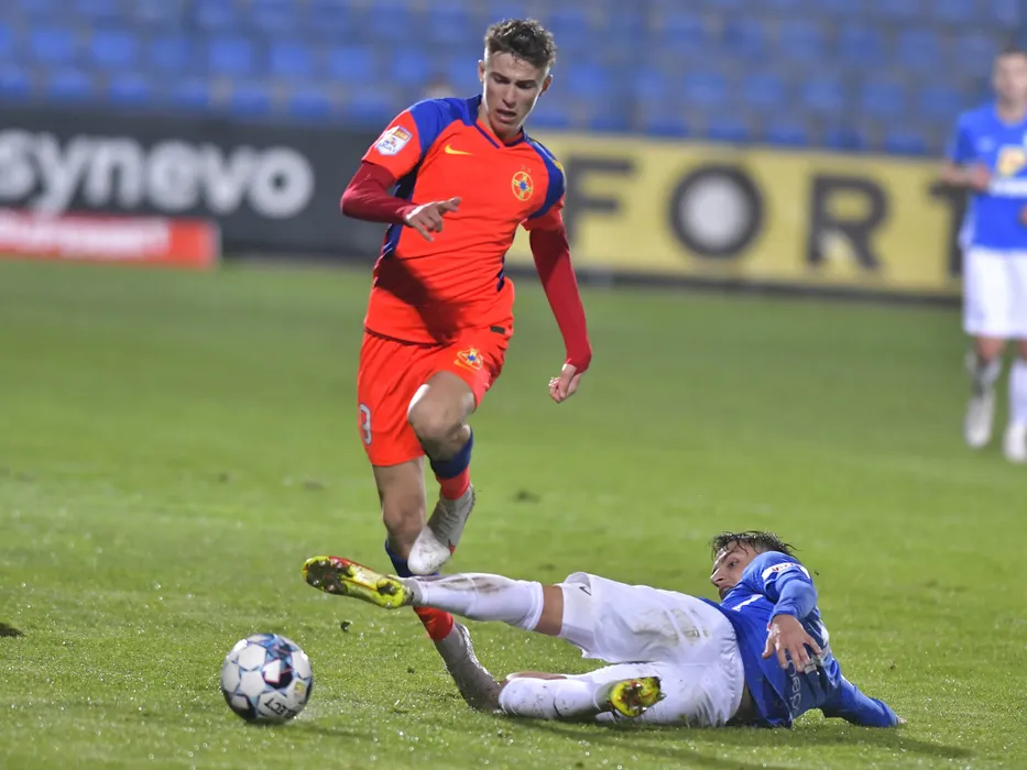Octavian George Popescu si George Danut Ganea in meciul de fotbal dintre Farul Constanta si FCSB, contand pentru Liga 1 Casa Pariurilor, desfasurat pe Stadionul central al Academiei Gheorghe Hagi din Ovidiu, joi 4 noiembrie 2021. © FOTO:Razvan Pasarica/SPORT PICTURES