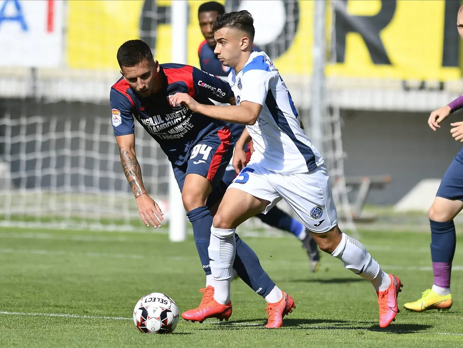 Ovidiu Alexandru Bic si Cristian George Merloi in meciul de fotbal dintre Chindia Targoviste si Academica Clinceni, contand pentru play-out-ul Ligii 1 Casa Pariurilor, disputat fara spectatori pe Stadionul Ilie Oana din Ploiesti, miercuri 29 iulie 2020. © FOTO:Razvan Pasarica/SPORT PICTURES