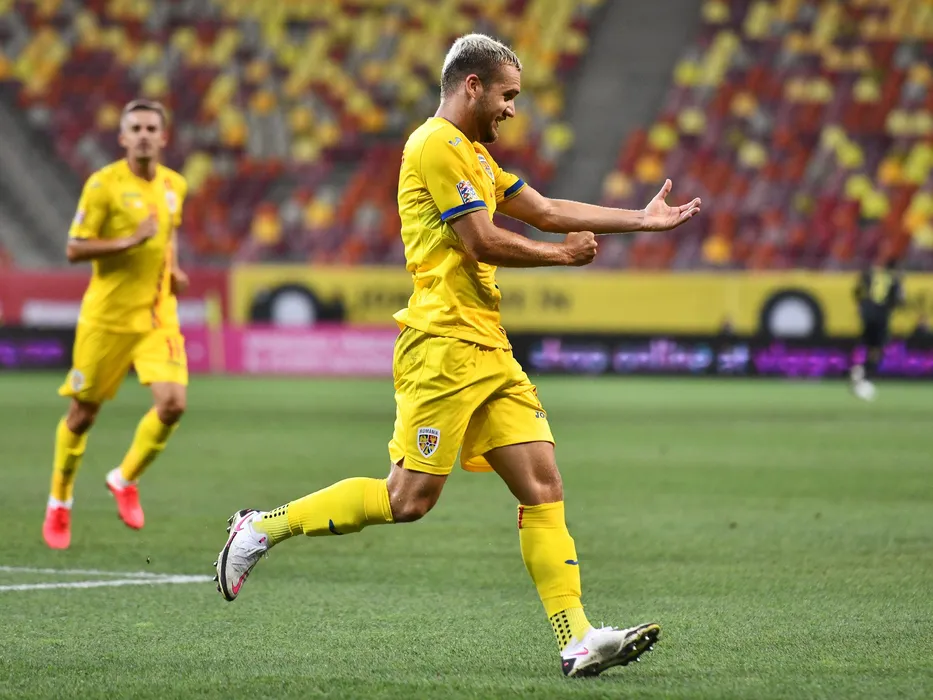 George Puscas se bucura dupa un gol marcat in meciul de fotbal dintre Romania si Irlanda de Nord, contand pentru Liga Natiunilor, desfasurat fara spectatori pe Arena Nationala din Bucuresti, vineri 4 septembrie 2020. © FOTO:Razvan Pasarica/SPORT PICTURES