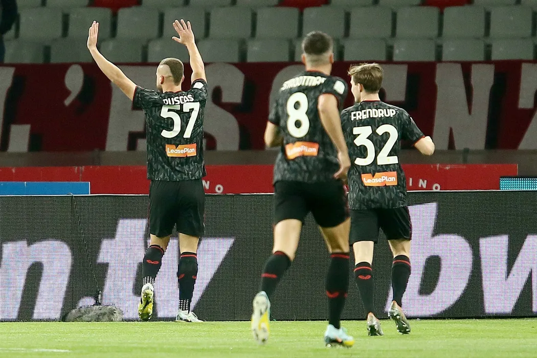 Dicember 26, 2022 Bari, Italy - sport, soccer - Bari vs Genoa - Italian Football Championship League BKT 2022/2023 - San Nicola stadium. In the pic: George Puscas - Genoa Celebrates,Image: 746593337, License: Rights-managed, Restrictions: , Model Release: no