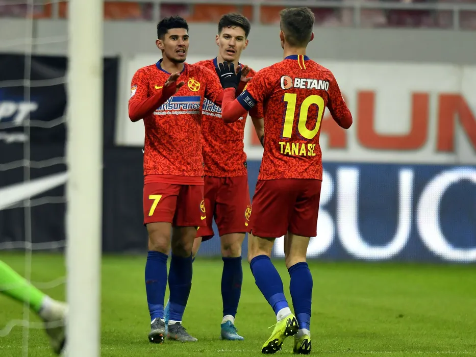 Florinel Coman si Dennis Man se bucura dupa un gol marcat in meciul de fotbal dintre FCSB si Gaz Metan Medias, contand pentru Liga 1 Casa Pariurilor, desfasurat pe Arena Nationala din Bucuresti, vineri 6 decembrie 2019. © FOTO:Razvan Pasarica/SPORT PICTURES