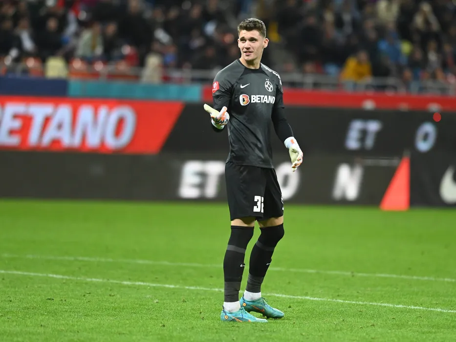 Stefan Tarnovanu reactioneaza in meciul de fotbal dintre FCSB si UTA Arad, contand pentru Superliga Superbet, desfasurat pe Arena Nationala din Bucuresti, duminica 16 octombrie 2022. © FOTO:Razvan Pasarica/SPORT PICTURES