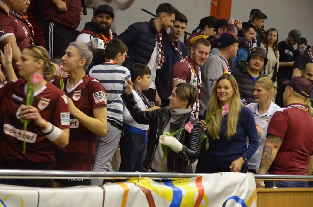 Gest superb al ultrașilor rapidiști! Suporterii au oferit flori jucătoarelor la meciul dintre Rapid și Baia Mare | FOTO