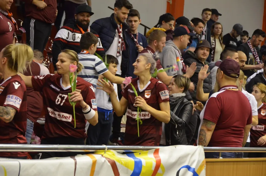Gest superb al ultrașilor rapidiști! Suporterii au oferit flori jucătoarelor la meciul dintre Rapid și Baia Mare | FOTO