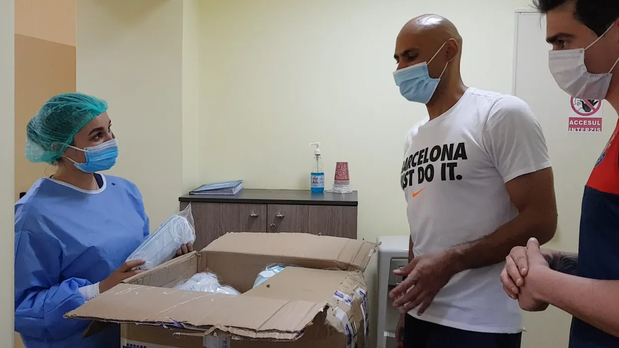 Gest superb de la copii pentru copii. Academia de fotbal deținută de Nana Falemi, donație de 1500 de măști pentru spitalul „Grigore Alexandrescu” | GALERIE FOTO