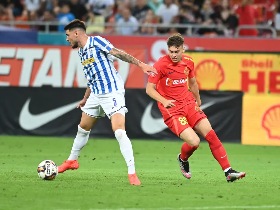 Claudiu Belu Iordache si Eduard Gabriel Radaslavescu in meciul de fotbal dintre FCSB si Politehnica Iasi, din cadrul Superligii Superbet, desfasurat pe Arena Nationala din Bucuresti, duminica 20 august 2023. © FOTO:Razvan Pasarica/SPORT PICTURES