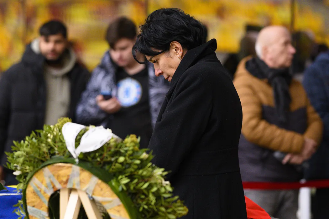 Alexandra Duckadam aduce un ultim omagiu la sicriul cu corpul neinsufletit al sotului sau, fostul fotbalist, castigator al Cupei Campionilor Europeni din 1986, Helmut Duckadam, la Arena Nationala, in Bucuresti, marti, 3 decembrie 2024. ALEXANDRU DOBRE/ MEDIAFAX FOTO.