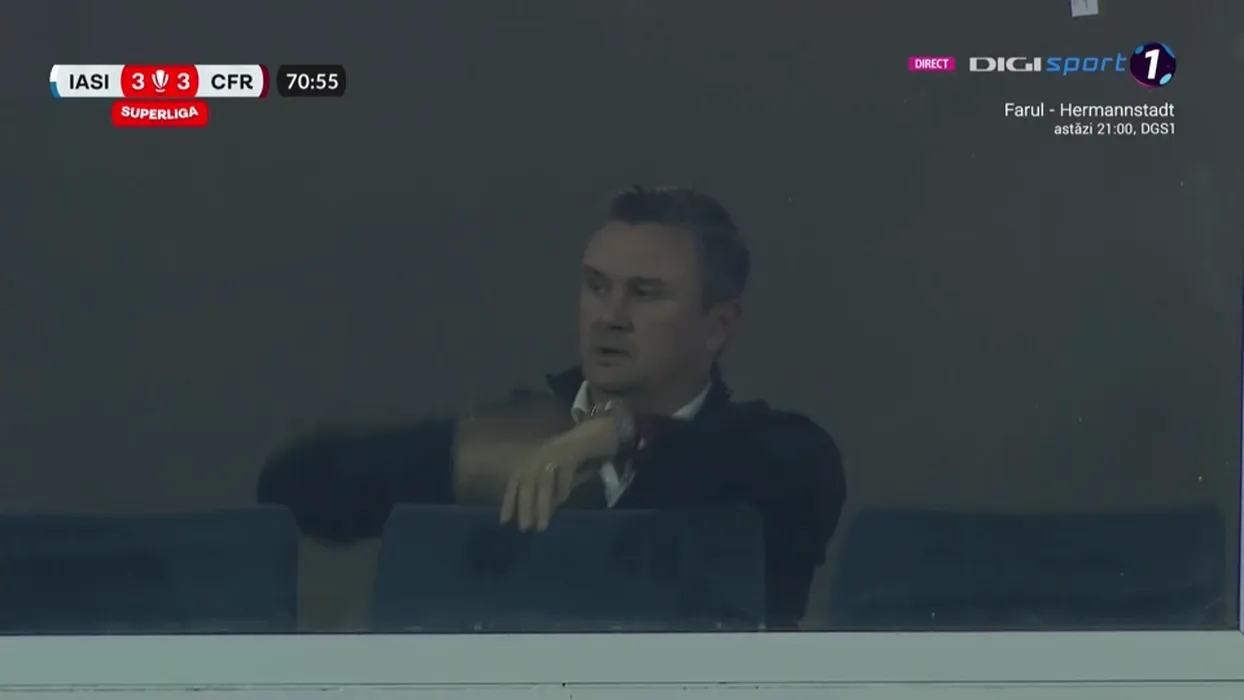 Gesturi disperate ale lui Cristi Balaj în momentul în care VAR a anulat golul lui Bîrligea! Cum a fost filmat președintele lui CFR Cluj în timp ce viziona reluările de la faza controversată din minutul 70 | FOTO