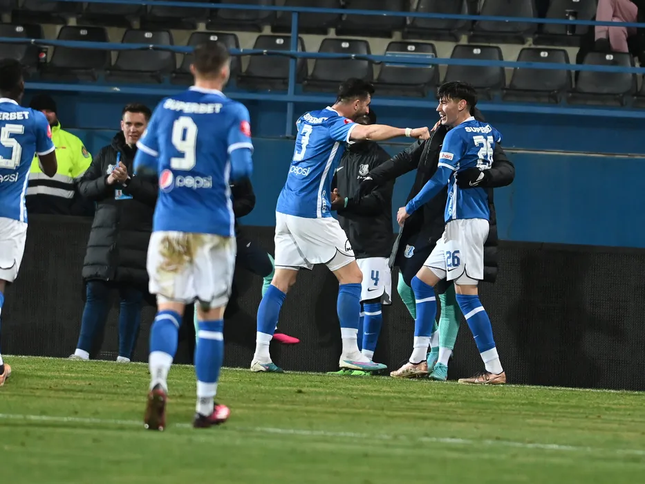 Adrian Mazilu se bucura dupa un gol marcat alaturi de Mihai Popescu in meciul de fotbal dintre Farul Constanta si Sepsi OSK Sfantu Gheorghe, contand pentru Superliga Superbet, desfasurat pe Stadionul central al Academiei Gheorghe Hagi din Ovidiu, marti 28 februarie 2023. © FOTO:Razvan Pasarica/SPORT PICTURES
