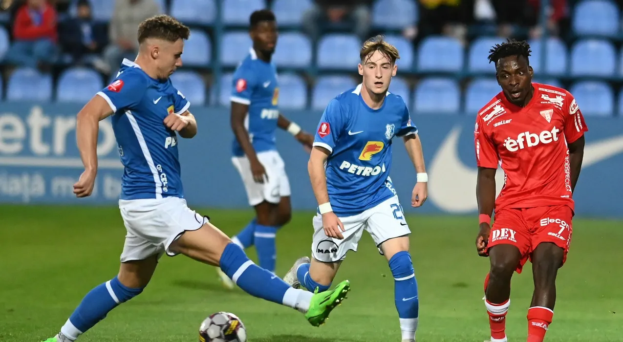 Louis Munteanu, Constantin Grameni si Philip Porwei Otele in meciul de fotbal dintre Farul Constanta si UTA Arad, contand pentru Superliga Superbet, desfasurat pe Stadionul central al Academiei Gheorghe Hagi din Ovidiu, duminica 2 octombrie 2022. © FOTO:Razvan Pasarica/SPORT PICTURES