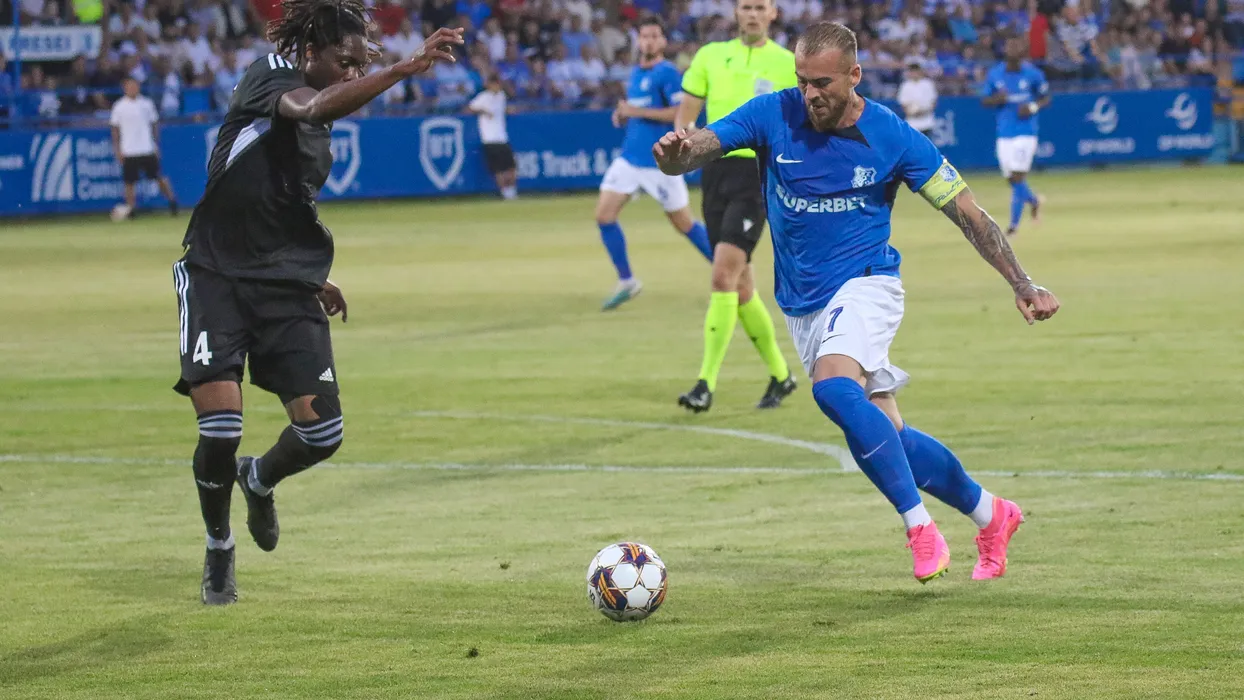 Meciul de fotbal dintre Farul Constanta si Sheriff Tiraspol, contand pentru prima mansa a turului 1 preliminar al Ligii Campionilor, desfasurat pe Stadionul Viitorul din Ovidiu, miercuri 12 iulie 2023. © FOTO:Gheorghe Fluster/SPORT PICTURES