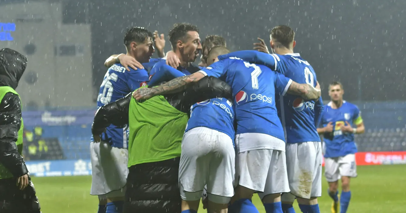 Bucurie a fotbalistilor constanteni dupa un gol marcat cu Adrian Mazilu si Andrei Viorel Artean in meciul de fotbal dintre Farul Constanta si Rapid Bucuresti, contand pentru Superliga Superbet, desfasurat pe Stadionul central al Academiei Gheorghe Hagi din Ovidiu, sambata 11 martie 2023. © FOTO:Razvan Pasarica/SPORT PICTURES