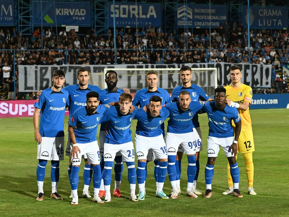 Fotbalistii constanteni la o fotografie de grup realizata inaintea meciului de fotbal dintre Farul Constanta si Universitatea Craiova, contand pentru Superliga Superbet, desfasurat pe Stadionul central al Academiei Gheorghe Hagi din Ovidiu, duminica 27 august 2023. © FOTO:Razvan Pasarica/SPORT PICTURES