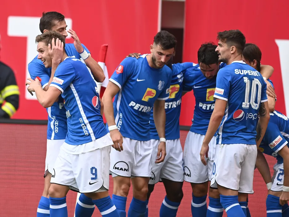 Bucurie a fotbalistilor constanteni dupa un gol marcat cu Ionut Justinian Larie, Louis Munteanu, Mihai Popescu si Vladut Calin Morar in meciul de fotbal dintre Sepsi OSK Sfantu Gheorghe si Farul Constanta, contand pentru Superliga Superbet, desfasurat pe Sepsi Arena din Sfantu Gheorghe, duminica 9 octombrie 2022. © FOTO:Razvan Pasarica/SPORT PICTURES