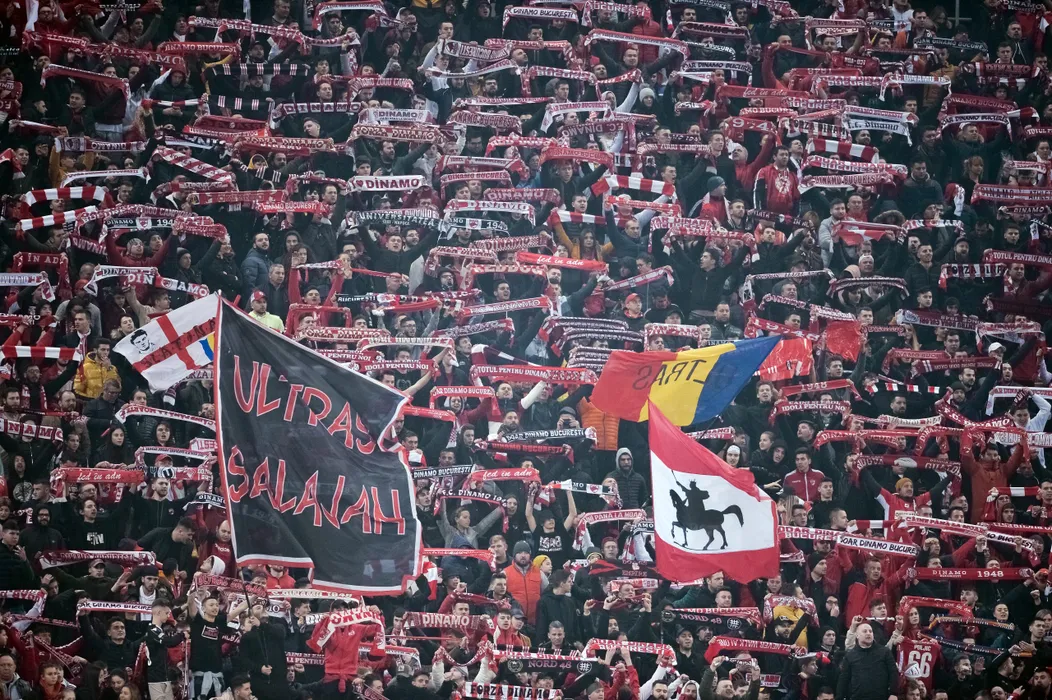 Suporterii echipei Dinamo reactioneaza in timpul meciului de fotbal contra echipei FCSB, din etapa a XXV-a a Ligii 1, disputat pe Arena Nationala, duminica, 16 februarie 2020. ALEXANDRU DOBRE/ MEDIAFAX FOTO