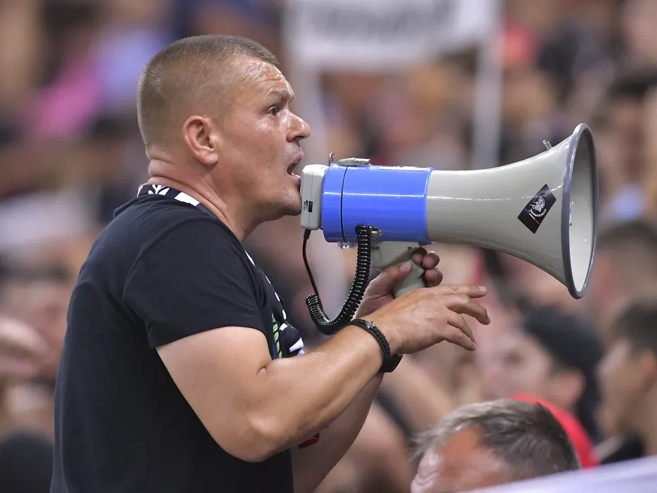 Gheorghe Mustata conduce galeria stelista la meciul de fotbal dintre FCSB si Sepsi OSK Sfantu Gheorghe, contand pentru Liga 1 Casa Pariurilor, desfasurat pe Arena Nationala din Bucuresti, luni 23 august 2021. © FOTO:Razvan Pasarica/SPORT PICTURES