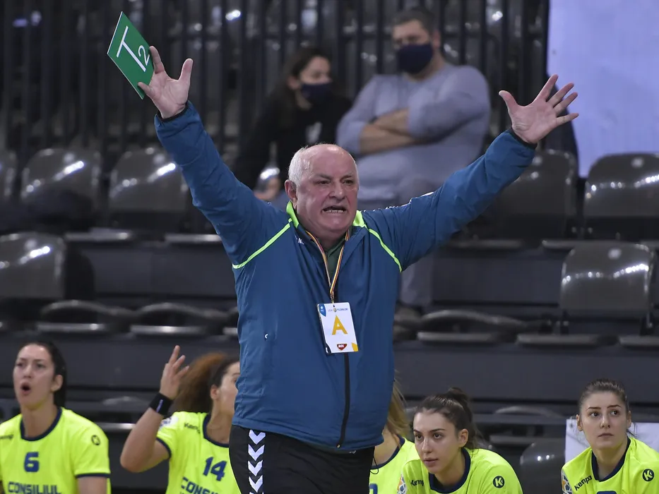 Gheorghe Tadici reactioneaza in meciul de handbal feminin dintre SCM Gloria Buzau si HC Zalau, contand pentru Liga Florilor, desfasurat fara spectatori in Sepsi Arena din Sfantu Gheorghe, joi 18 februarie 2021. © FOTO:Razvan Pasarica/SPORT PICTURES