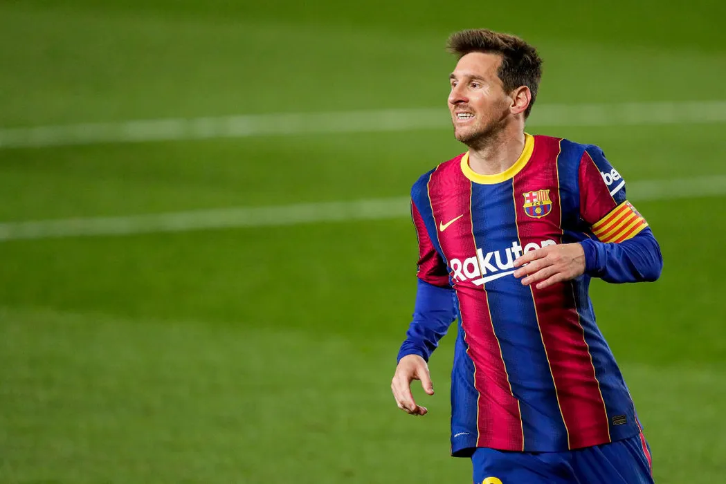 BARCELONA, SPAIN - APRIL 22: Lionel Messi of FC Barcelona during the La Liga Santander match between FC Barcelona v Getafe at the Camp Nou on April 22, 2021 in Barcelona Spain (Photo by David S. Bustamante/Soccrates/Getty Images)