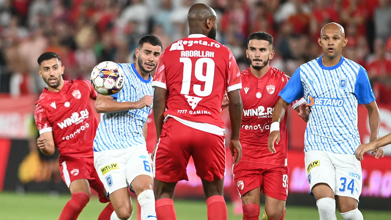 Screciu Vladimir Ionut, Lamine Ghezali si Raul Michel Melo Da Silva in meciul de fotbal dintre Dinamo Bucuresti si Universitatea Craiova, din cadrul Superligii Superbet, desfasurat pe Stadionul National Arcul de Triumf din Bucuresti, luni 17 iulie 2023. © FOTO:Razvan Pasarica/SPORT PICTURES
