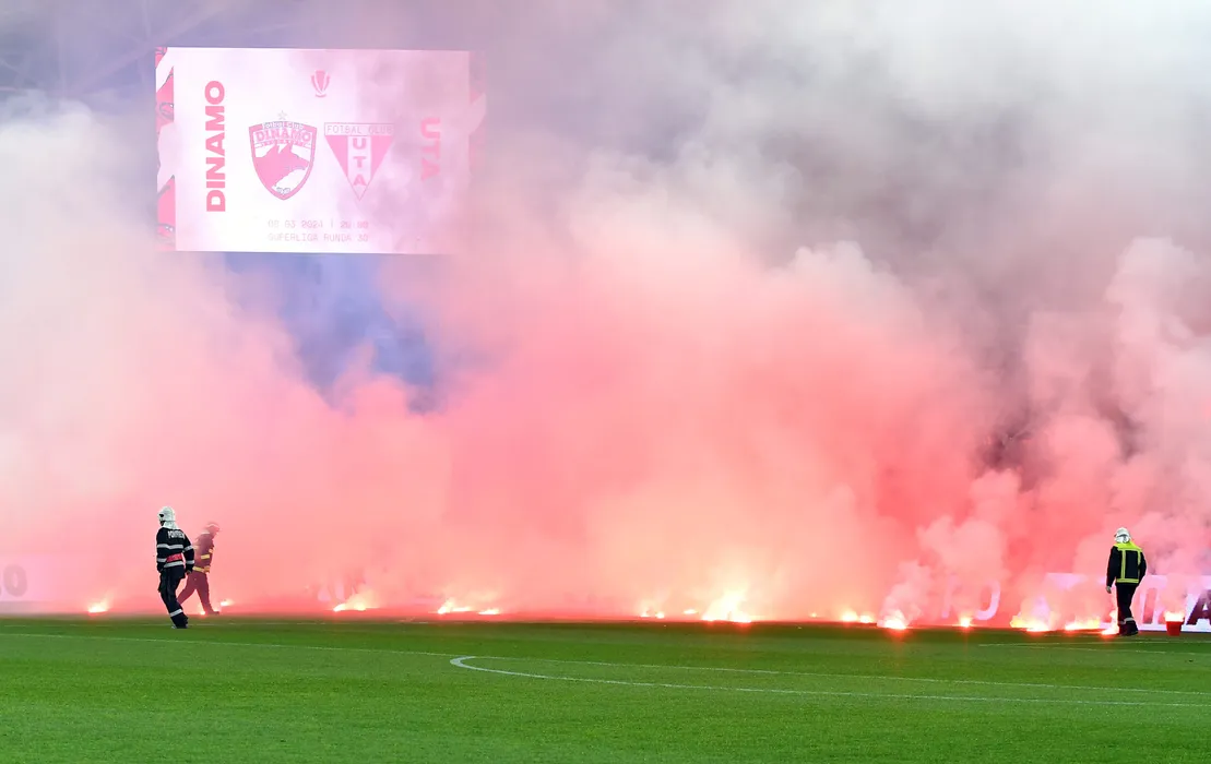 Spectacol incendiar inainte de meciul de fotbal dintre Dinamo București și UTA Arad, contând pentru SUPERLIGA SUPERBET, desfășurat pe Stadionul Arcul de Triumf din București, vineri 8 martie 2024. © FOTO: Simion MECHNO/SPORT PICTURES