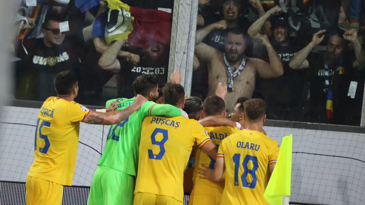 Bucurie a fotbalistilor romani dupa un gol marcat de catre Valentin Mihăilă in meciul de fotbal dintre Elvetia si Romania, contand pentru Preliminariile Campionatului European, desfasurat pe Luzern Arena din Lucerna, luni 19 iunie 2023.© FOTO SPORT PICTURES