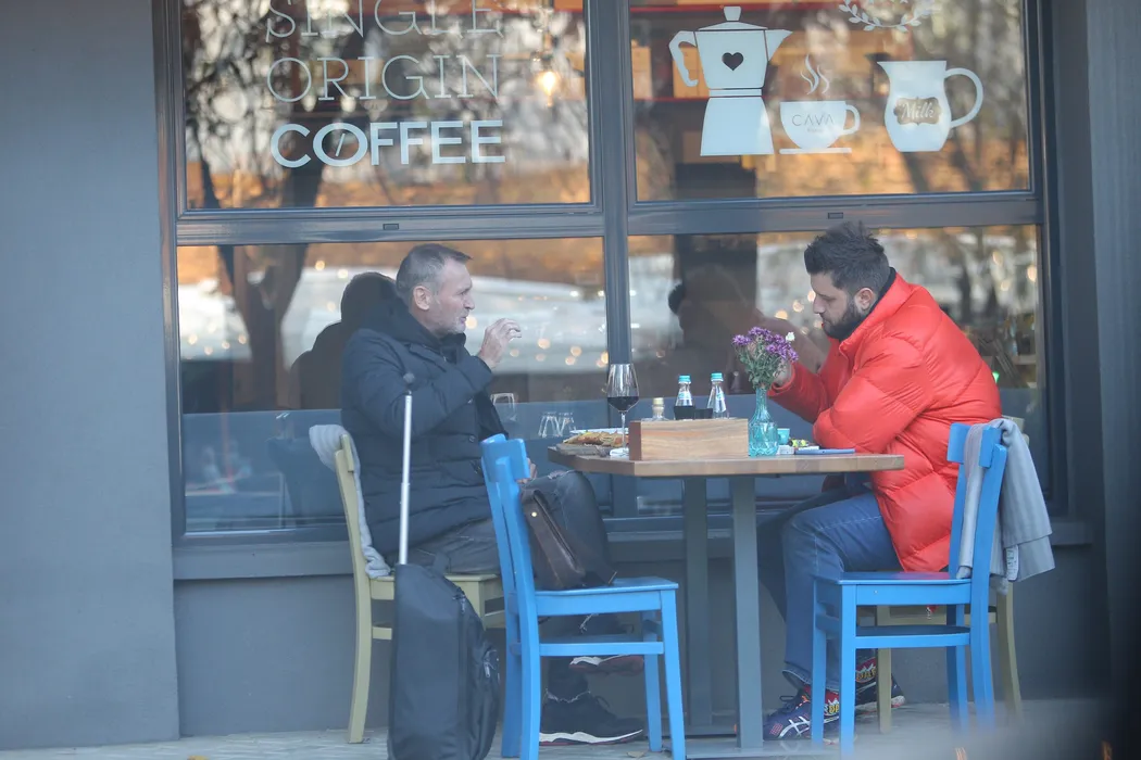 Gică Craioveanu a pus țara la cale, la un „pahar de vorbă”. În lipsa zaibărului de acasă s-a mulțumit cu un vin italian | FOTO EXCLUSIV