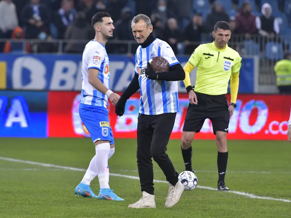 Gica Craioveanu da lovitura de start la meciul de fotbal dintre Universitatea Craiova si FC U Craiova, contand pentru Liga 1 Casa Pariurilor, desfasurat pe Stadionul Ion Oblemenco din Craiova, luni 14 februarie 2022. © FOTO:Razvan Pasarica/SPORT PICTURES