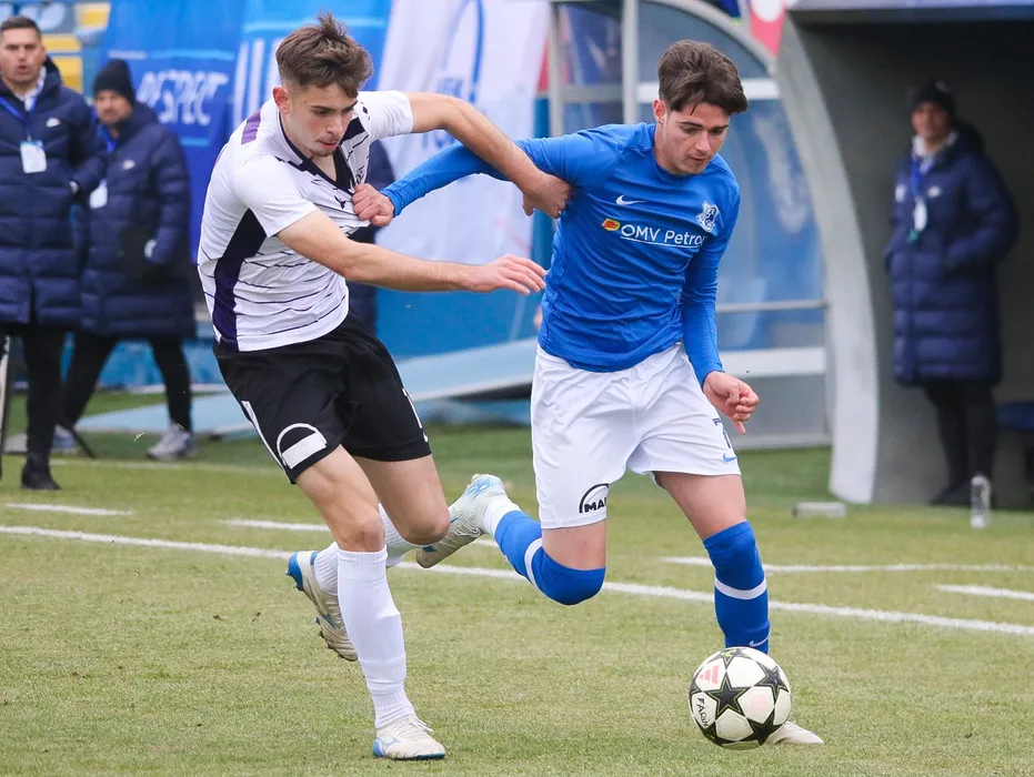 Ianis Avramescu în meciul de fotbal dintre FC Farul Constanța si Lokomotiva Zagreb, contând pentru UEFA Youth League, desfășurat pe Stadionul central al Academiei Gheorghe Hagi din Ovidiu, miercuri 27 noiembrie 2024. © FOTO: Sorin DANIELCIUC/SPORT PICTURES