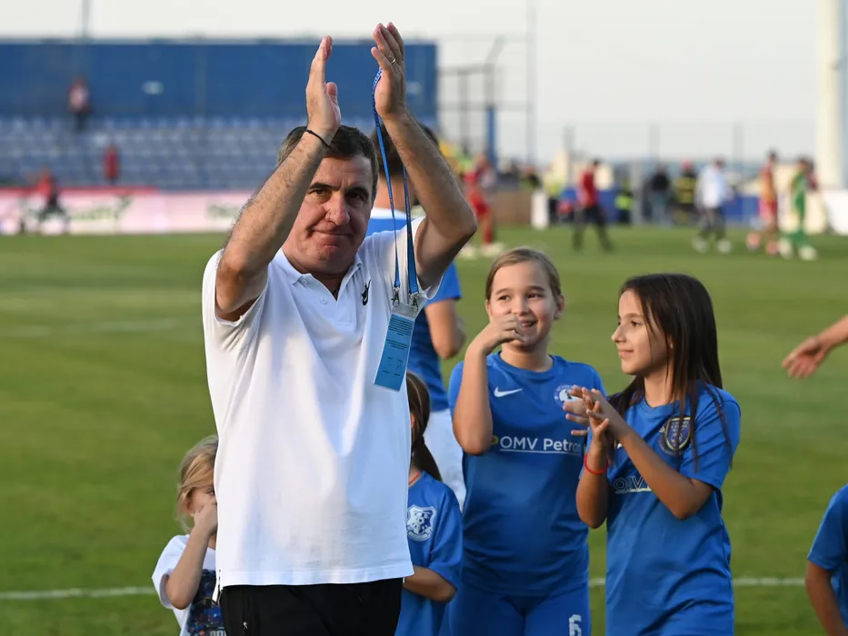 Gheorghe Hagi saluta galeria dupa meciul de fotbal dintre Farul Constanta si Sepsi OSK Sfantu Gheorghe, contand pentru Superliga Superbet, desfasurat pe Stadionul central al Academiei Gheorghe Hagi din Ovidiu, duminica 22 septembrie 2024. © FOTO:Razvan Pasarica/SPORT PICTURES