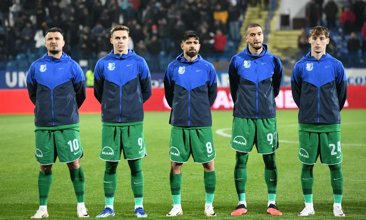 Constantin Grameni, Damien Dylan Dussaut, Ionuț Daniel Vână, Louis Munteanu și Constantin Valentin Budescu la startul meciuluila startul meciului de fotbal dintre POLI IASI si FARUL CONSTANTA contând pentru SuperLiga Superbet, desfășurat pe Stadionul Emil Alexandrescu din Iași, vineri 01 decembrie 2023. © FOTO: Tudi/SPORT PICTURES