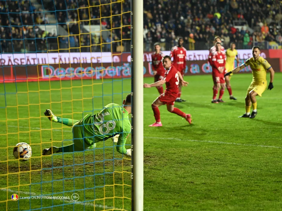 Valentin Constantin Ticu marcheaza un gol din lovitura libera in poarta lui Razvan Cristian Ducan la meciul de fotbal dintre Petrolul Ploiesti si FC Botosani, din cadrul Superligii Superbet, desfasurat pe Stadionul Ilie Oana din Ploiesti, vineri 24 noiembrie 2023. Ploiesti *** Valentin Constantin Ticu scores a goal from a free kick in the goal of Razvan Cristian Ducan at the football match between Petrolul Ploiesti and FC Botosani, within the Superbet Super League, held at the Ilie Oana Stadium in Ploiesti, on Friday 24 November 2023 Ploiesti Copyright: xRazvanxPasarica/SPORTxPICTURESx