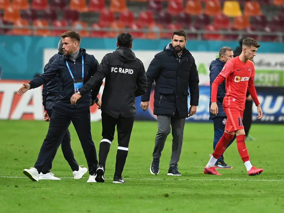 Mihai Pintilii, Adrian Mutu si Octavian George Popescu dupa meciul de fotbal dintre FCSB si Rapid Bucuresti, contand pentru Superliga Superbet, desfasurat pe Arena Nationala din Bucuresti, duminica 6 noiembrie 2022. © FOTO:Razvan Pasarica/SPORT PICTURES