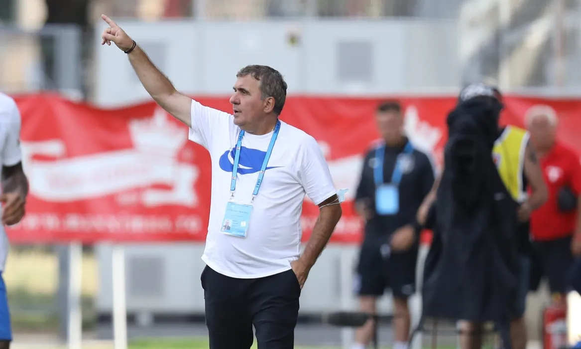 Gheorghe Hagi, antrenorul echipei Farul Constanta, urmareste meciul de fotbal contra formatiei UTA Arad din prima etapa a Ligii 1, disputat pe stadionul Francisc Neuman din Arad, duminica, 18 iulie 2021. CIPRIAN PETCUT / MEDIAFAX FOTO