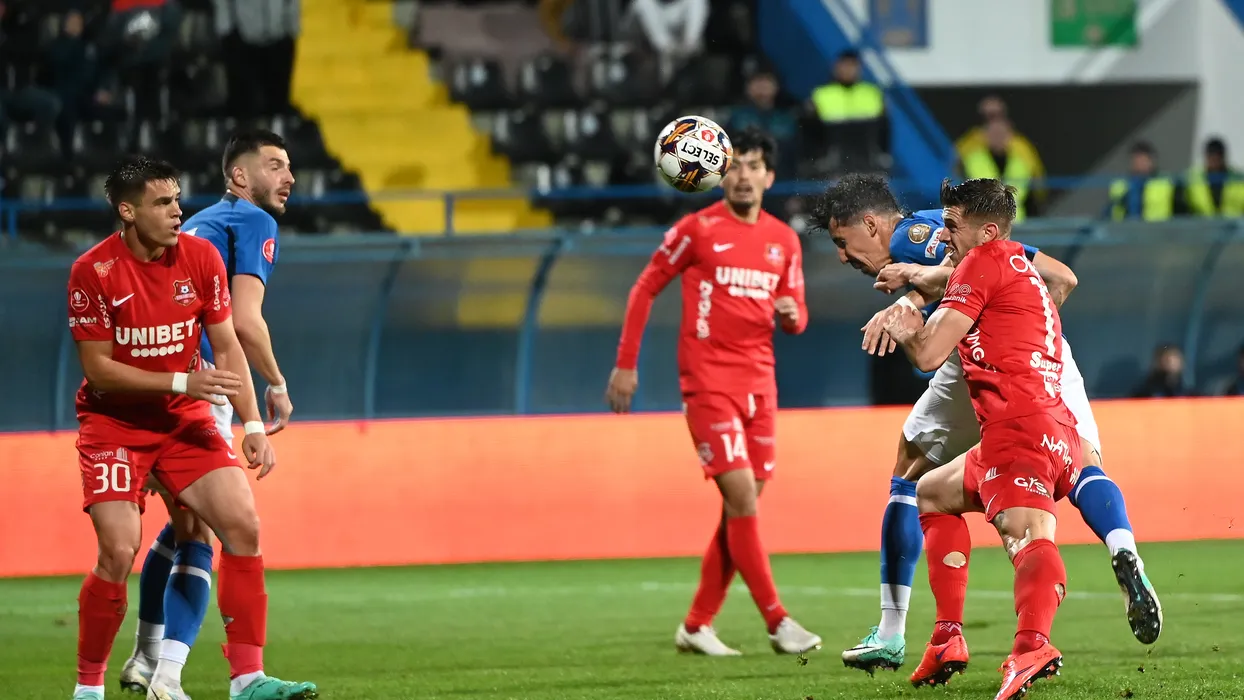 Andrei Viorel Artean marcheaza un gol de langa Mihai Ionut Butean sub privirile lui George Daniel Paraschiv si Mihai Popescu in meciul de fotbal dintre Farul Constanta si FC Hermannstadt, contand pentru Superliga Superbet, desfasurat pe Stadionul central al Academiei Gheorghe Hagi din Ovidiu, sambata 11 noiembrie 2023. © FOTO:Razvan Pasarica/SPORT PICTURES