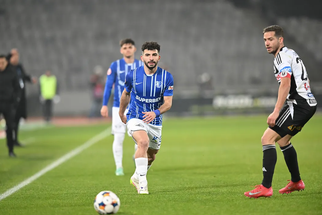 Mihai Alexandru Isfan si Mihaita Alexandru Chipciu in meciul de fotbal dintre FC Universitatea Cluj si Farul Constanta, contand pentru Superliga Superbet, desfasurat pe Cluj Arena din Cluj-Napoca, duminica 21 decembrie 2025. © FOTO:Flaviu Buboi/SPORT PICTURES