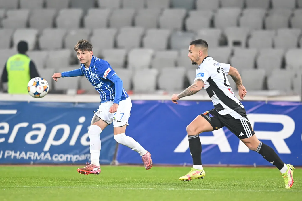 Razvan Andrei Tanasa si Dino Mikanovic in meciul de fotbal dintre FC Universitatea Cluj si Farul Constanta, contand pentru Superliga Superbet, desfasurat pe Cluj Arena din Cluj-Napoca, duminica 21 decembrie 2025. © FOTO:Flaviu Buboi/SPORT PICTURES