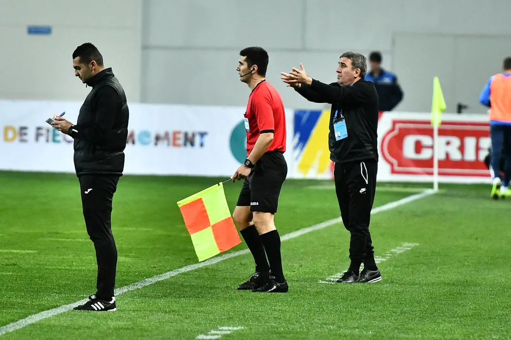 Gheorghe Hagi (D), antrenorul echipei FC Viitorul urmareste meciul de fotbal contra echipei Universitatea Craiova din semifinalele Cupei Romaniei, disputat pe stadionul Ion Oblemenco din Craiova, joi, 4 aprilie 2019. REMUS BADEA / MEDIAFAX FOTO