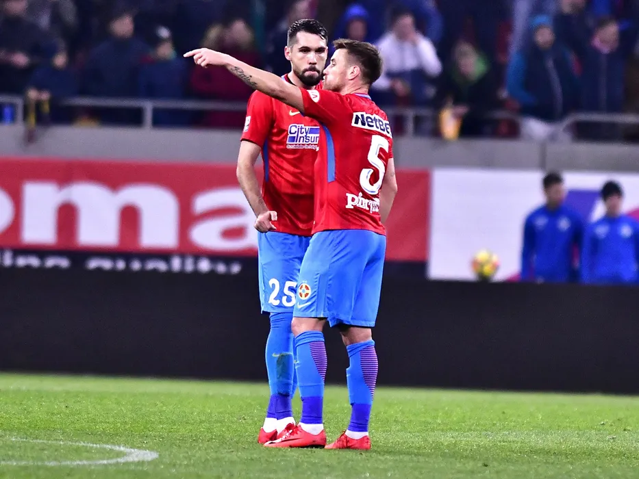 Valerica Gaman si Mihai Pintilii in meciul de fotbal dintre FC Steaua Bucuresti si CFR Cluj, din cadrul Ligii 1 Betano, desfasurat pe Arena Nationala din Bucuresti, sambata 10 februarie 2018. © FOTO Razvan Pasarica/SPORT PICTURES