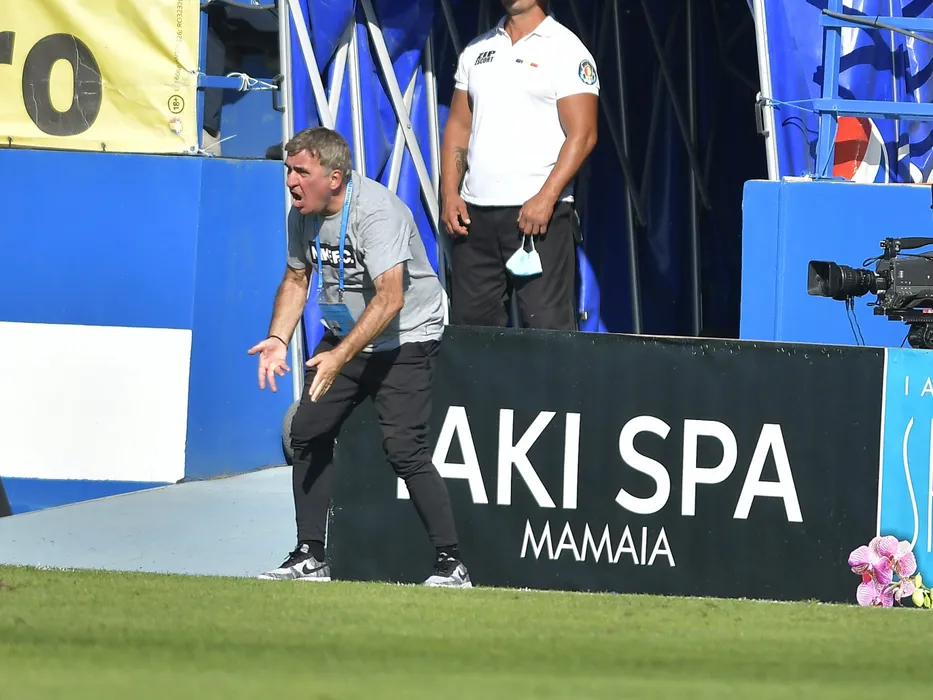 Gheorghe Hagi reactioneaza in meciul de fotbal dintre Farul Constanta si CS Mioveni, contand pentru Liga 1 Casa Pariurilor, desfasurat pe Stadionul central al Academiei Gheorghe Hagi din Ovidiu, duminica 26 septembrie 2021. © FOTO:Razvan Pasarica/SPORT PICTURES