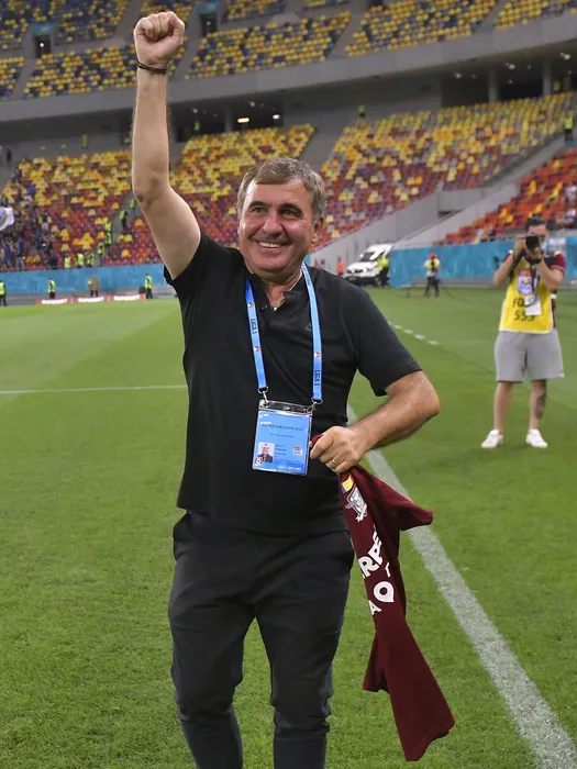 Gheorghe Hagi saluta galeria Rapidului la meciul de fotbal dintre Rapid Bucuresti si Farul Constanta, contand pentru Liga 1 Casa Pariurilor, desfasurat pe Arena Nationala din Bucuresti, vineri 30 iulie 2021. © FOTO:Razvan Pasarica/SPORT PICTURES