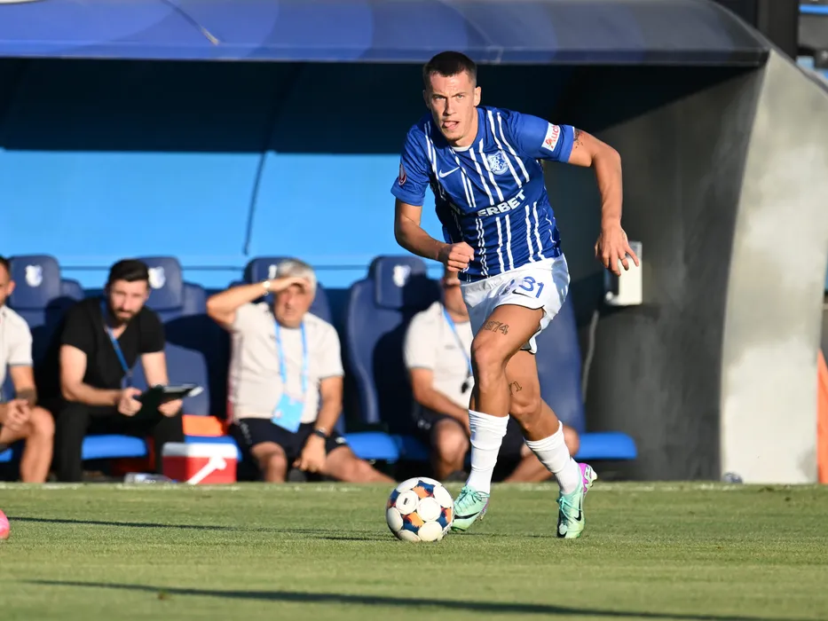 Mihai Alexandru Isfan in meciul de fotbal dintre Farul Constanta si Metaloglobus Bucuresti, contand pentru Superliga Superbet, desfasurat pe Stadionul central al Academiei Gheorghe Hagi din Ovidiu, vineri 1 august 2025. © FOTO:Razvan Pasarica/SPORT PICTURES