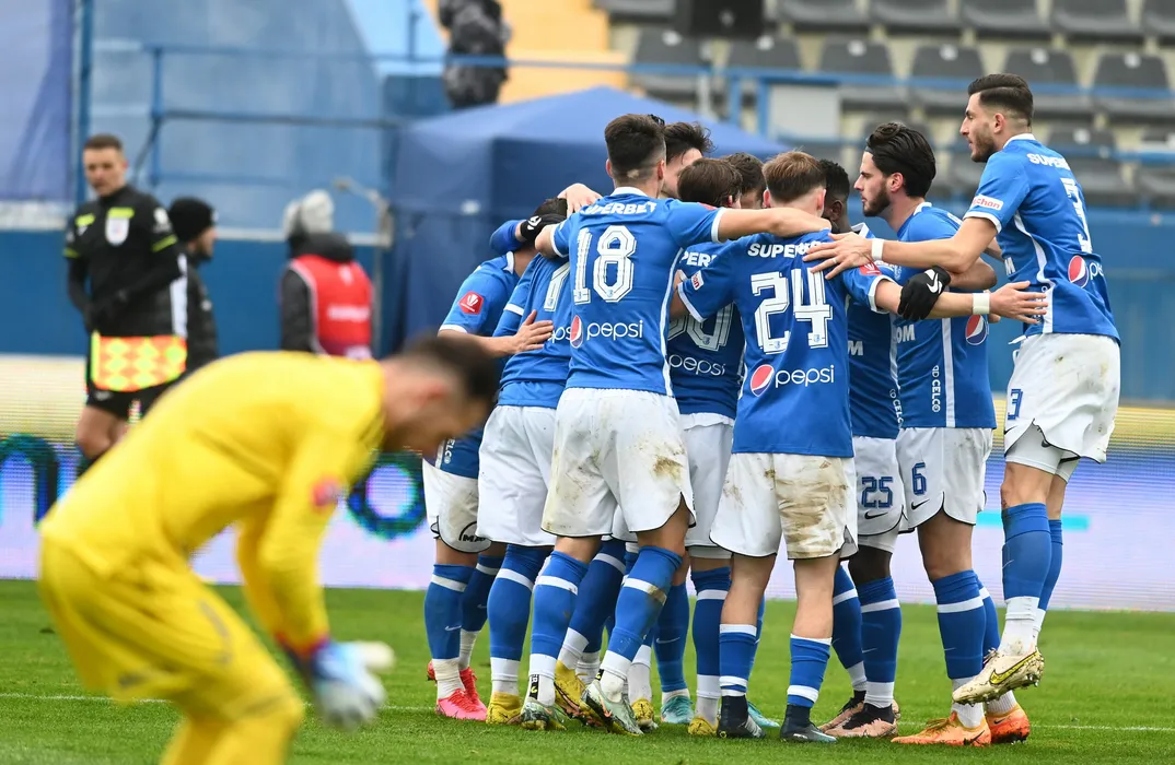Bucurie a fotbalistilor constanteni dupa un gol marcat cu Tudor Cristian Baluta si Mihai Popescu in meciul de fotbal dintre Farul Constanta si FC Botosani, contand pentru Superliga Superbet, desfasurat pe Stadionul central al Academiei Gheorghe Hagi din Ovidiu, duminica 4 decembrie 2022. © FOTO:Razvan Pasarica/SPORT PICTURES