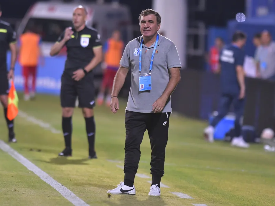 Gheorghe Hagi reactioneaza in meciul de fotbal dintre Farul Constanta si Chindia Targoviste, contand pentru Superliga Superbet, desfasurat pe Stadionul central al Academiei Gheorghe Hagi din Ovidiu, vineri 29 iulie 2022. © FOTO:Razvan Pasarica/SPORT PICTURES