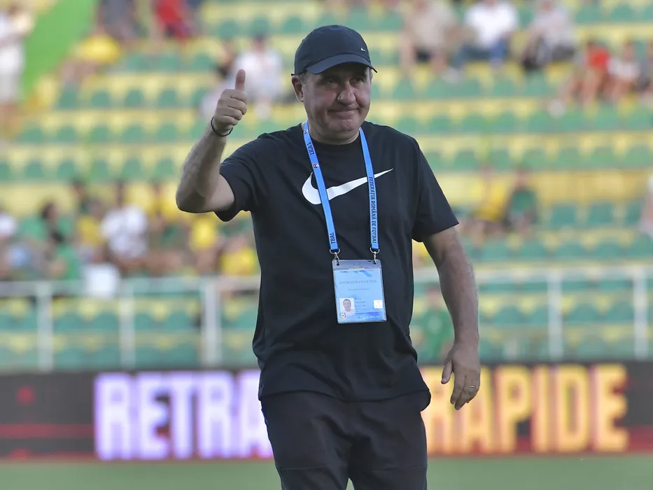Gheorghe Hagi reactioneaza in meciul de fotbal dintre CS Mioveni si Farul Constanta, contand pentru Superliga Superbet, desfasurat pe Stadionul Orasenesc din Mioveni, vineri 22 iulie 2022. © FOTO:Razvan Pasarica/SPORT PICTURES