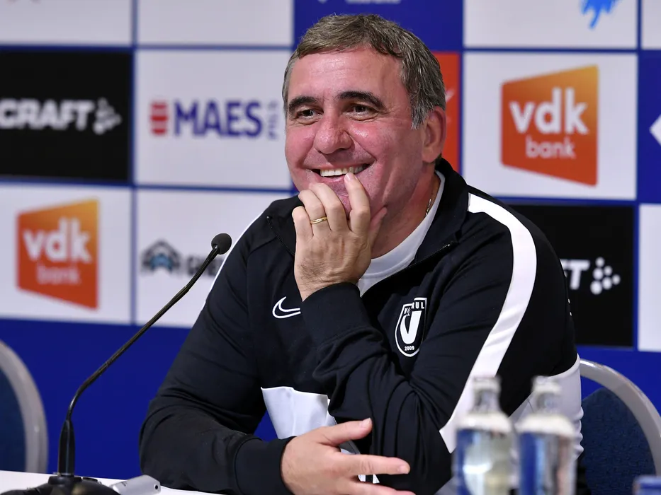 Gica Hagi la conferinta de presa de dinaintea meciului dintre FC Viitorul si KAA Gent, din preliminariile Ligii Europa, desfasurata pe Stadionul Ghelamco din Gent, miercuri 24 iulie 2019. © FOTO:Razvan Pasarica/SPORT PICTURES