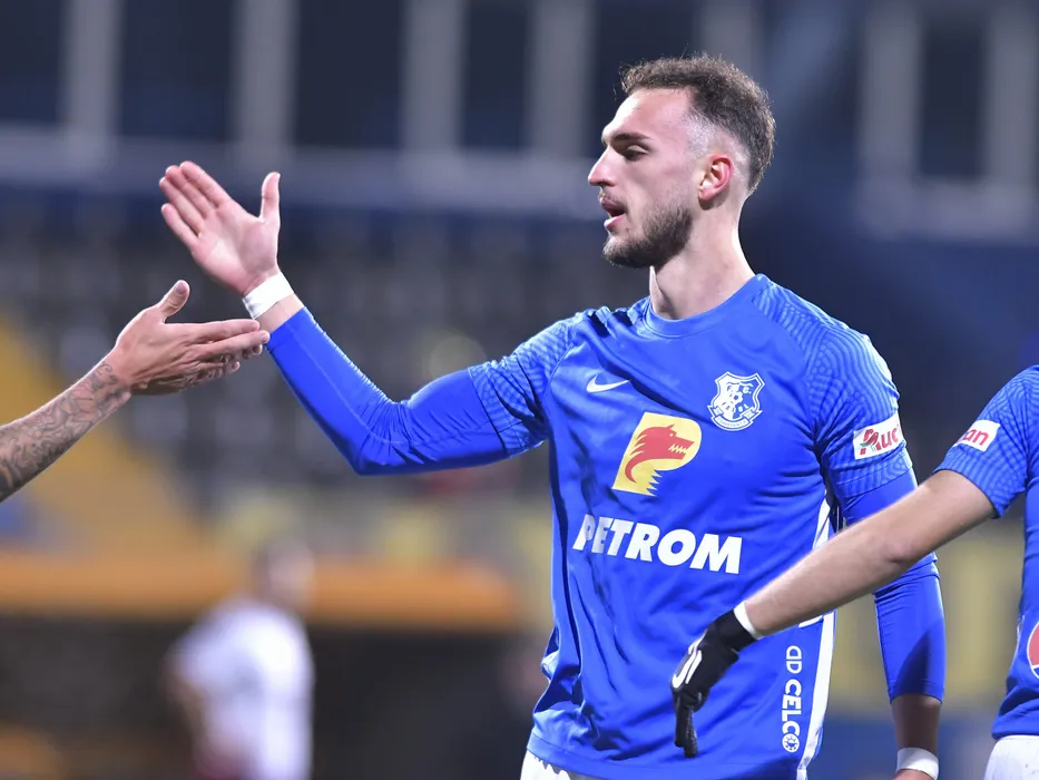 Virgil Eugen Ghita se bucura dupa un gol marcat in meciul de fotbal dintre Farul Constanta si Rapid Bucuresti, contand pentru Liga 1 Casa Pariurilor, desfasurat pe Stadionul central al Academiei Gheorghe Hagi din Ovidiu, sambata 4 decembrie 2021. © FOTO:Razvan Pasarica/SPORT PICTURES