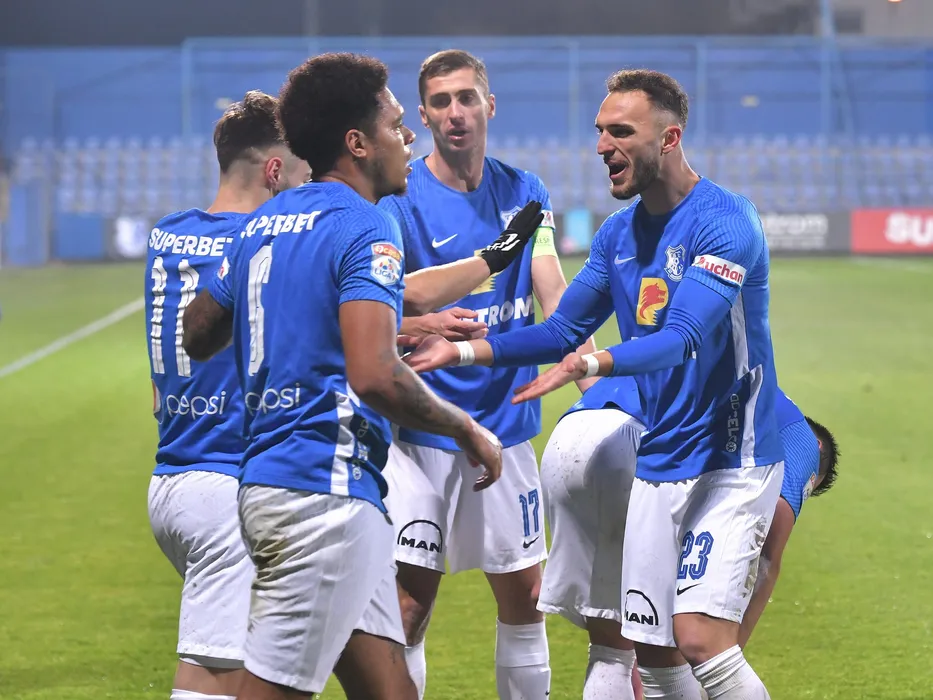 Bucurie a fotbalistilor constanteni dupa un gol marcat cu Bradley De Nooijer, Virgil Andrei Ciobanu, Virgil Eugen Ghita si Ionut Justinian Larie in meciul de fotbal dintre Farul Constanta si Rapid Bucuresti, contand pentru Liga 1 Casa Pariurilor, desfasurat pe Stadionul central al Academiei Gheorghe Hagi din Ovidiu, sambata 4 decembrie 2021. © FOTO:Razvan Pasarica/SPORT PICTURES